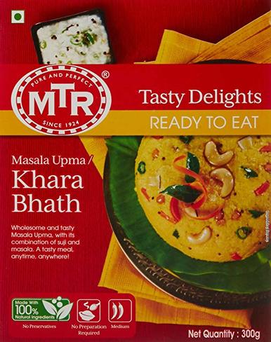 MTR Delicious Pleasures Khara Bhath is a prepared to-eat flavorful dish presented by MTR Food sources, a notable Indian food brand. Khara Bhath is a customary South Indian dish known for its fiery and tasty taste.